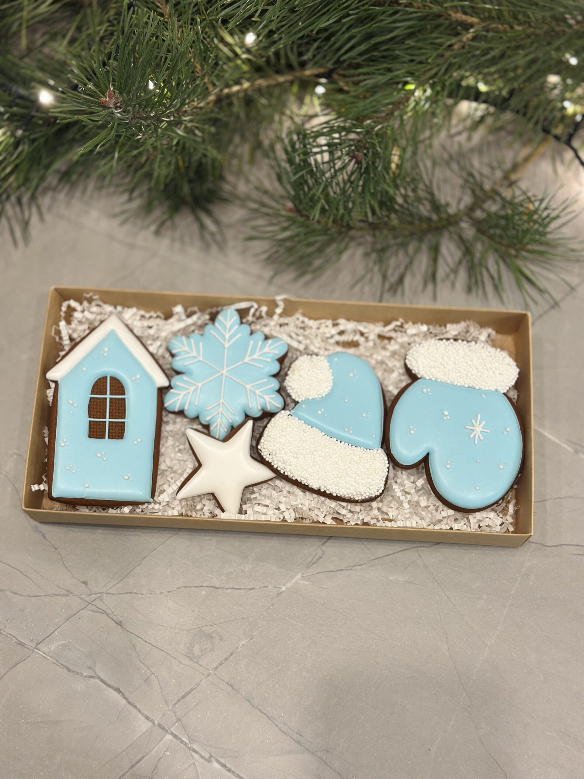 Dėžutės dydis – 20*20cm. Meduoliai supakuoti baltoje dėžutėje su skaidriu langeliu ir perrišta kaspinėliu